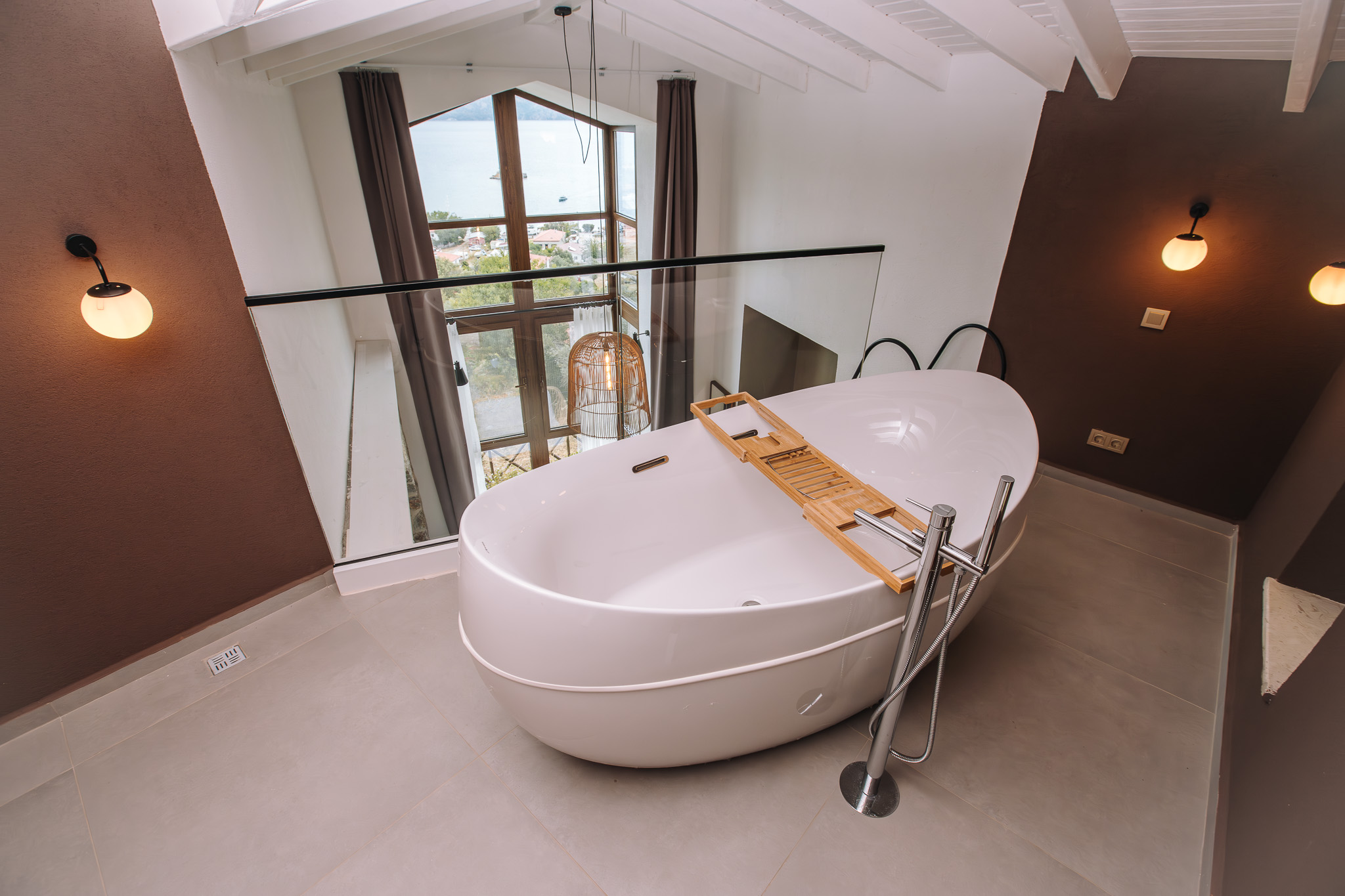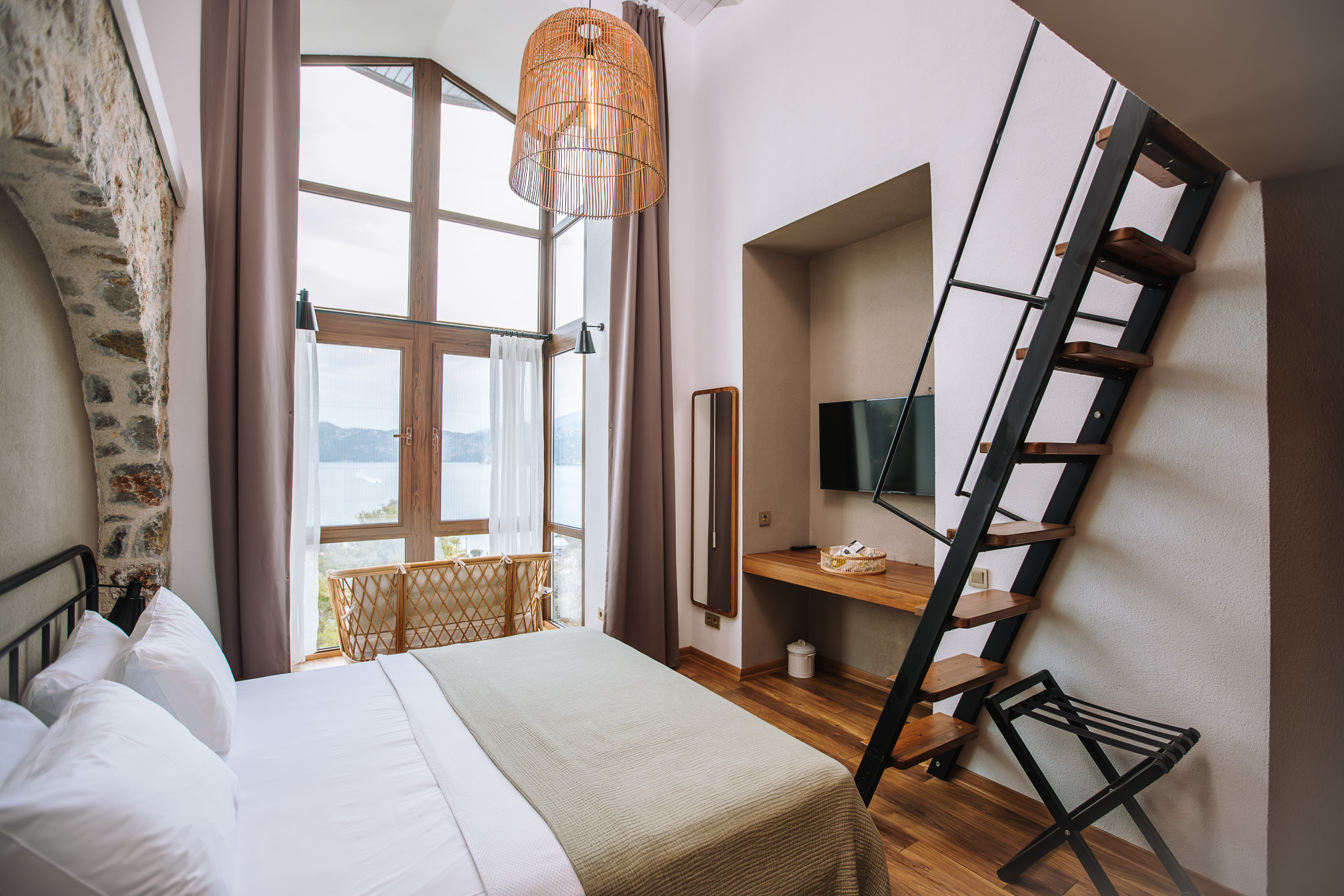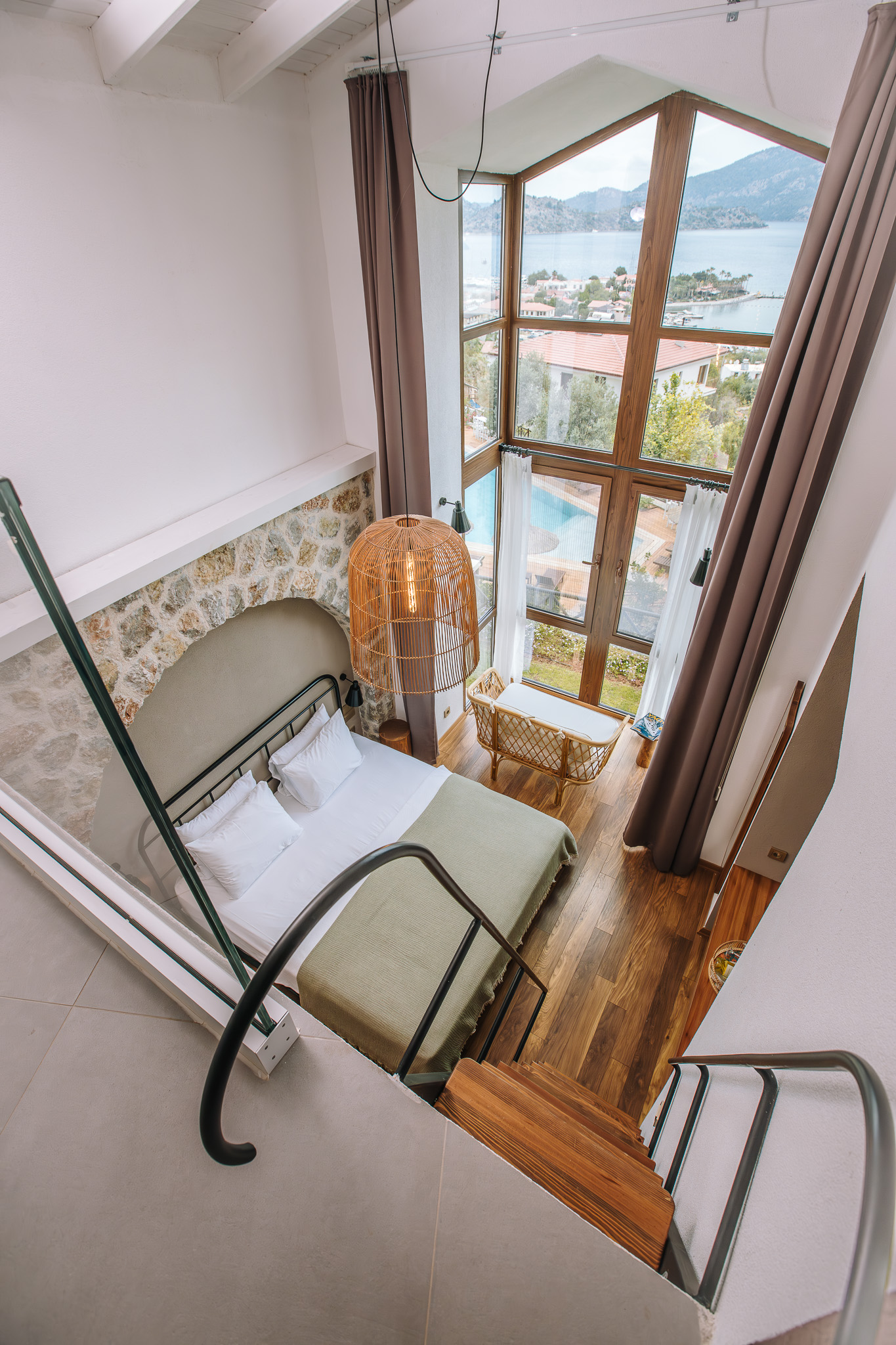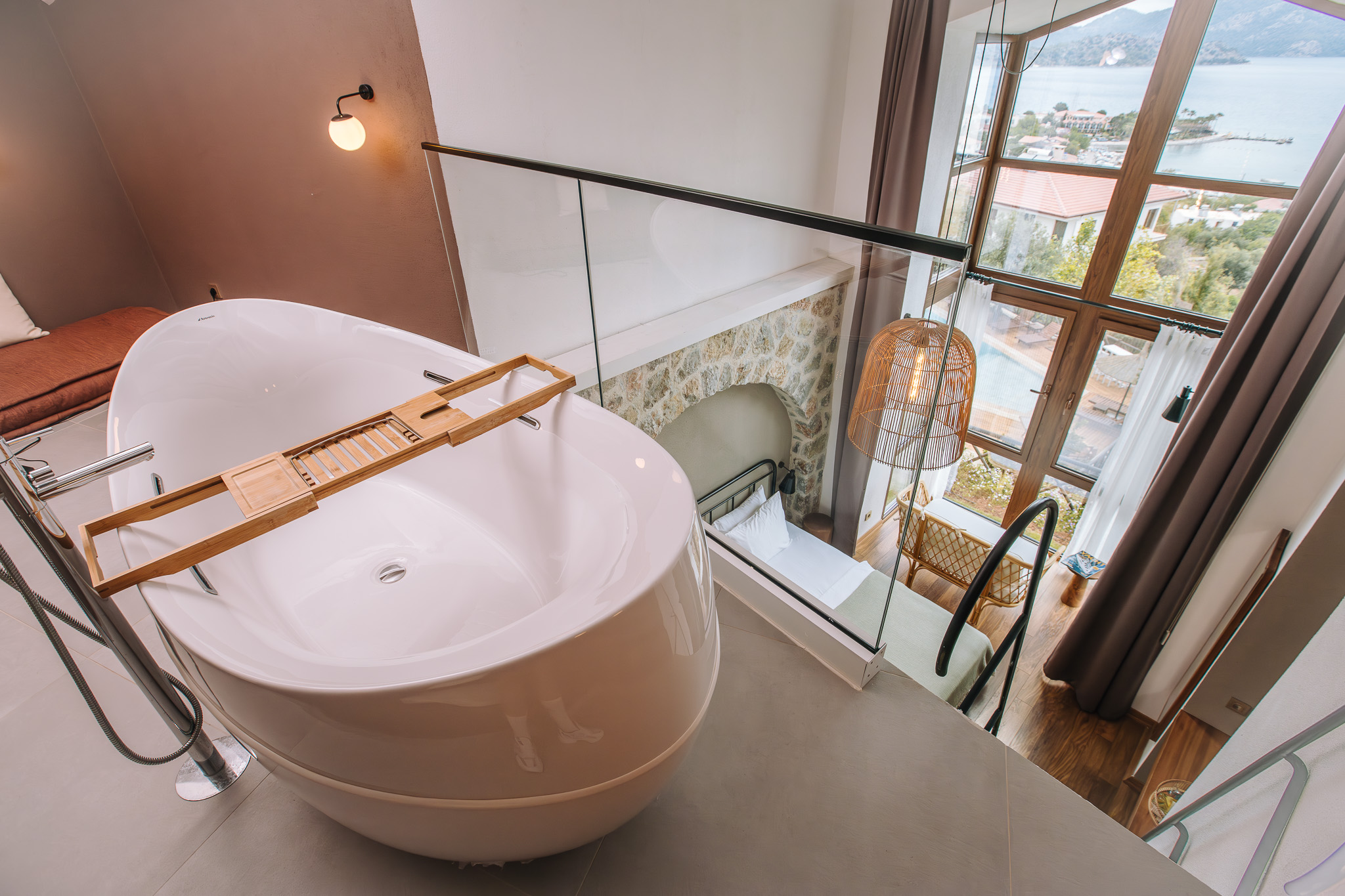 Asma katında, özel olarak konumlandırılmış küvet ve meditasyon/dinlenme alanı, size büyüleyici bir deniz manzarası sunar. Burada, günün yorgunluğunu atabilir ve ruhunuzu dinlendirebilirsiniz. Alt katta ise, konforlu bir yatak ve manzaraya hakim bir koltuk bulunur. Rahat ve etkileyici atmosferi, doğal dokularıyla sizin için özel bir sığınaktır.
